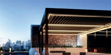 Die Bioklimatische Pergola Tilia ermöglicht die Regulierung der natürlichen außen Temperatur bei minimalen Energieverbrauch. Mit der Aluminiumstruktur behält es die Form und ist pflegeleicht. Es passt sich an die bestehende Architektur an oder kann als eigenständiges System eingesetzt werden. Die verstellbaren Lamellen des Systems bieten Ihnen Schutz vor direkter Sonnenstrahlung indem Sie den Winkel zu der Sonne anpassen können. Die geschlossenen Lamellen bilden ein vollständig geschlossenes System. Verfügbar mit ZIP Senkrechtmarkise, LED Beleuchtung und mit Verglasungssystem NICE.
